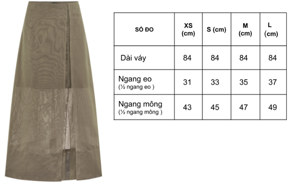 - Mô tả chi tiết: 𝗔𝗠𝗕𝗘𝗥 𝗠𝗜𝗗𝗜 𝗦𝗞𝗜𝗥𝗧 tôn vinh những đường nét thanh thoát của phái đẹp. Chất liệu Organza bay bổng sẽ là một sự lựa chọn lý tưởng cho những quý cô yêu thích sự thanh lịch và bền vững.