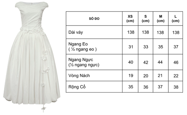 Lưu ý bảo quản: Treo váy ở nơi khô thoáng, tránh ánh nắng trực tiếp và không để sản phẩm tiếp xúc với độ ẩm cao.