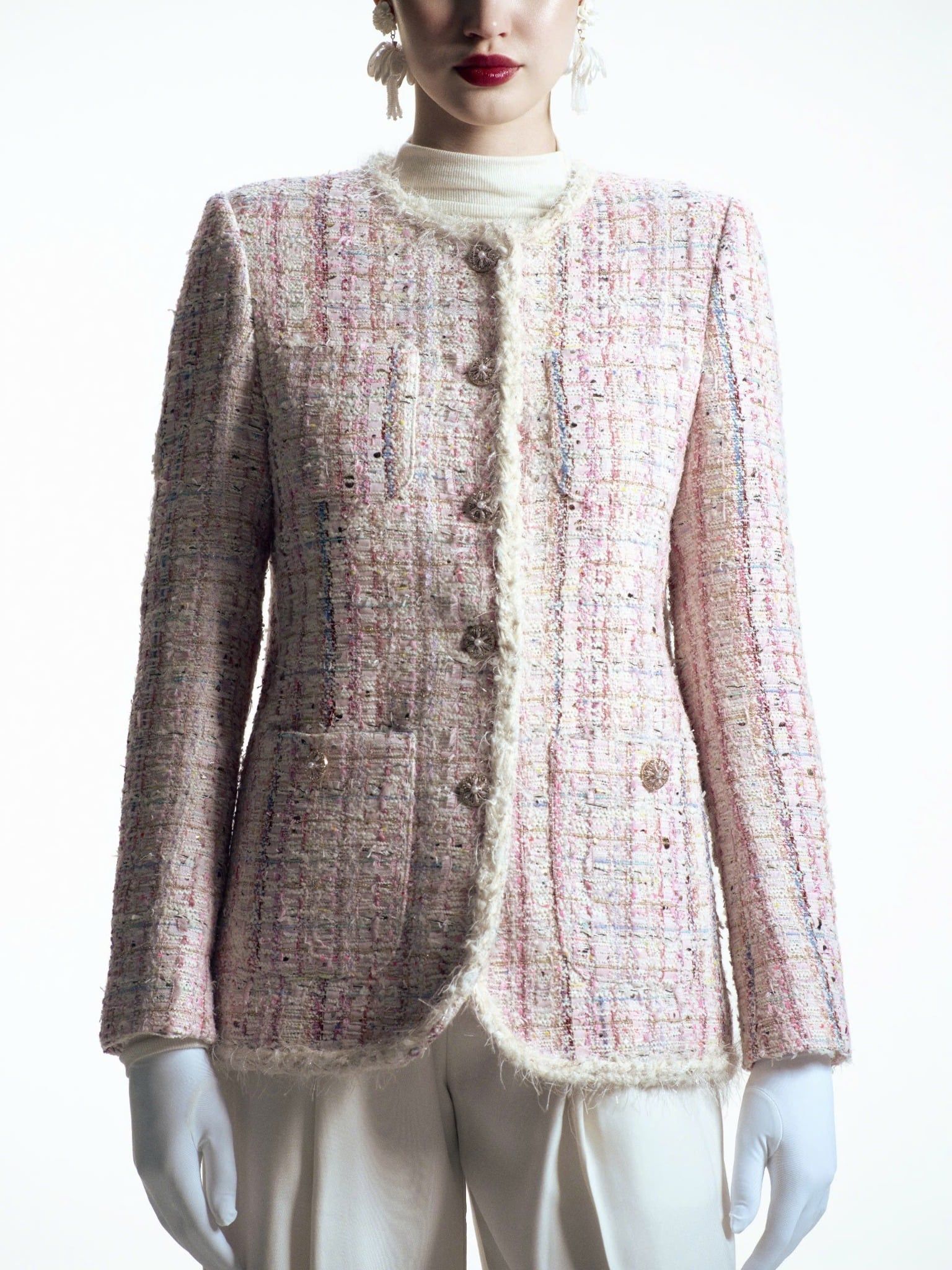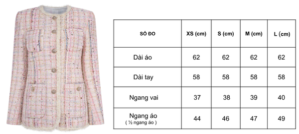 Blush Verse Tweed Jacket là chiếc áo khoác tweed đầy tinh tế, kết hợp giữa phom dáng cổ điển và chi tiết hiện đại, mang đến vẻ đẹp vừa nữ tính vừa chỉn chu cho người mặc. Thiết kế giữ dáng thoải mái vừa đủ, thể hiện sự mềm mại trong tổng thể kỷ luật và gọn gàng – phù hợp để phối cùng nhiều set trang phục khác nhau từ công sở đến các buổi gặp gỡ cuối tuần.