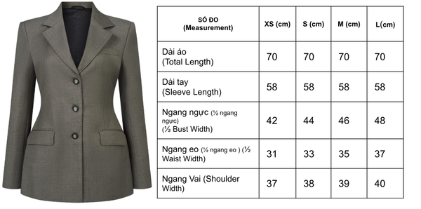 Dáng blazer cổ điển, giữ form tốt.
