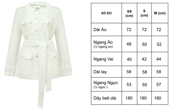 Lấy cảm hứng từ trang phục safari cổ điển nhưng được tối giản hóa theo tinh thần hiện đại, 𝗗𝗘𝗦𝗘𝗥𝗧 𝗠𝗜𝗦𝗧-𝗨𝗧𝗜𝗟𝗜𝗧𝗬 𝗟𝗜𝗡𝗘𝗡 𝗦𝗔𝗙𝗔𝗥𝗜 𝗝𝗔𝗖𝗞𝗘𝗧 được hoàn thiện trên nền chất liệu linen nhẹ thoáng. Áo sơ mi thiết kế dáng suông chuẩn chỉnh với cổ điển tròn, hàng nút dọc cùng điểm nhấn đai thắt eo bản lớn giúp tạo đường cong tinh tế mà vẫn giữ sự năng động. Tổng thể là lựa chọn lý tưởng cho những ngày hè sang – thanh lịch – không gò bó.