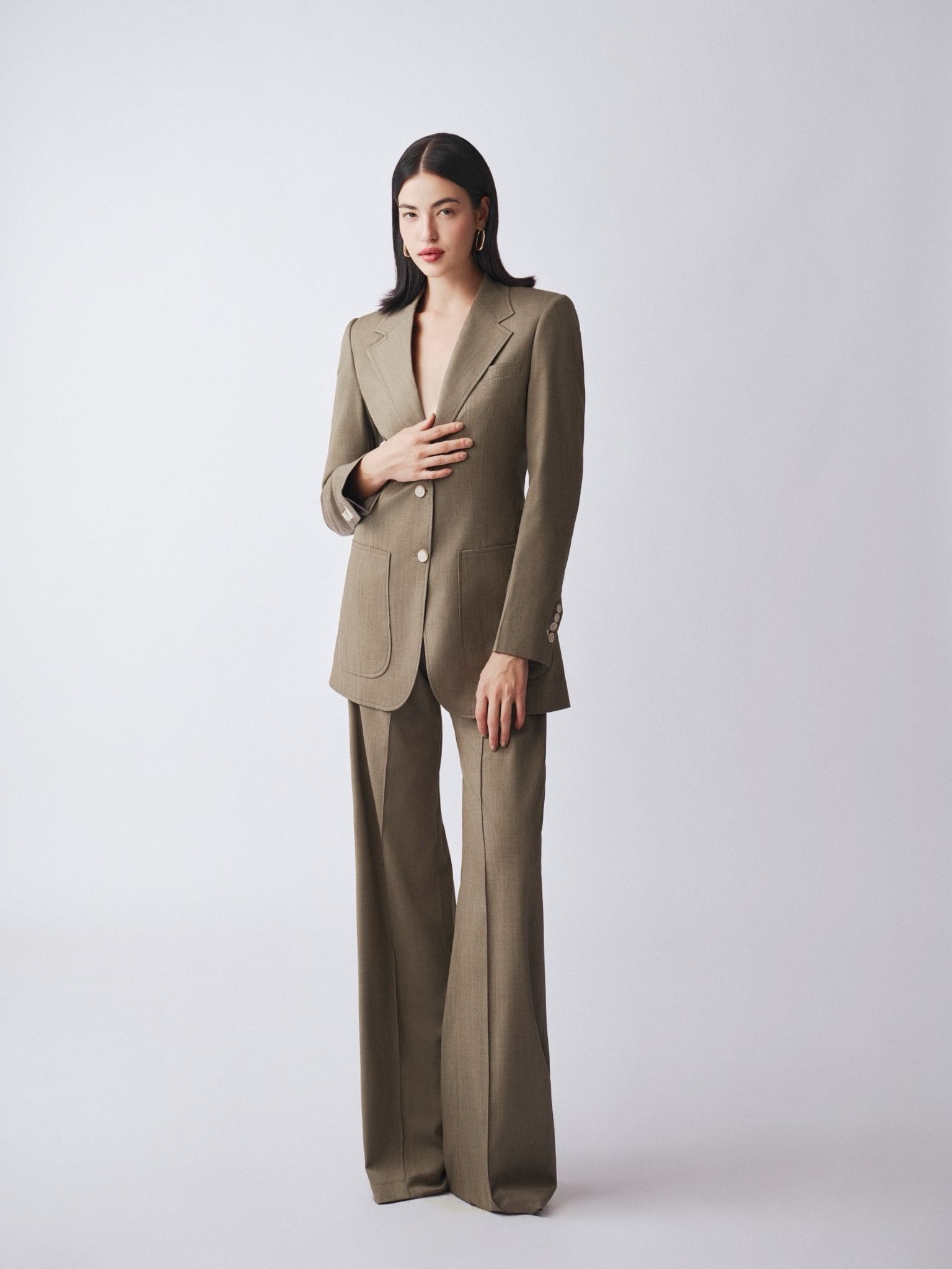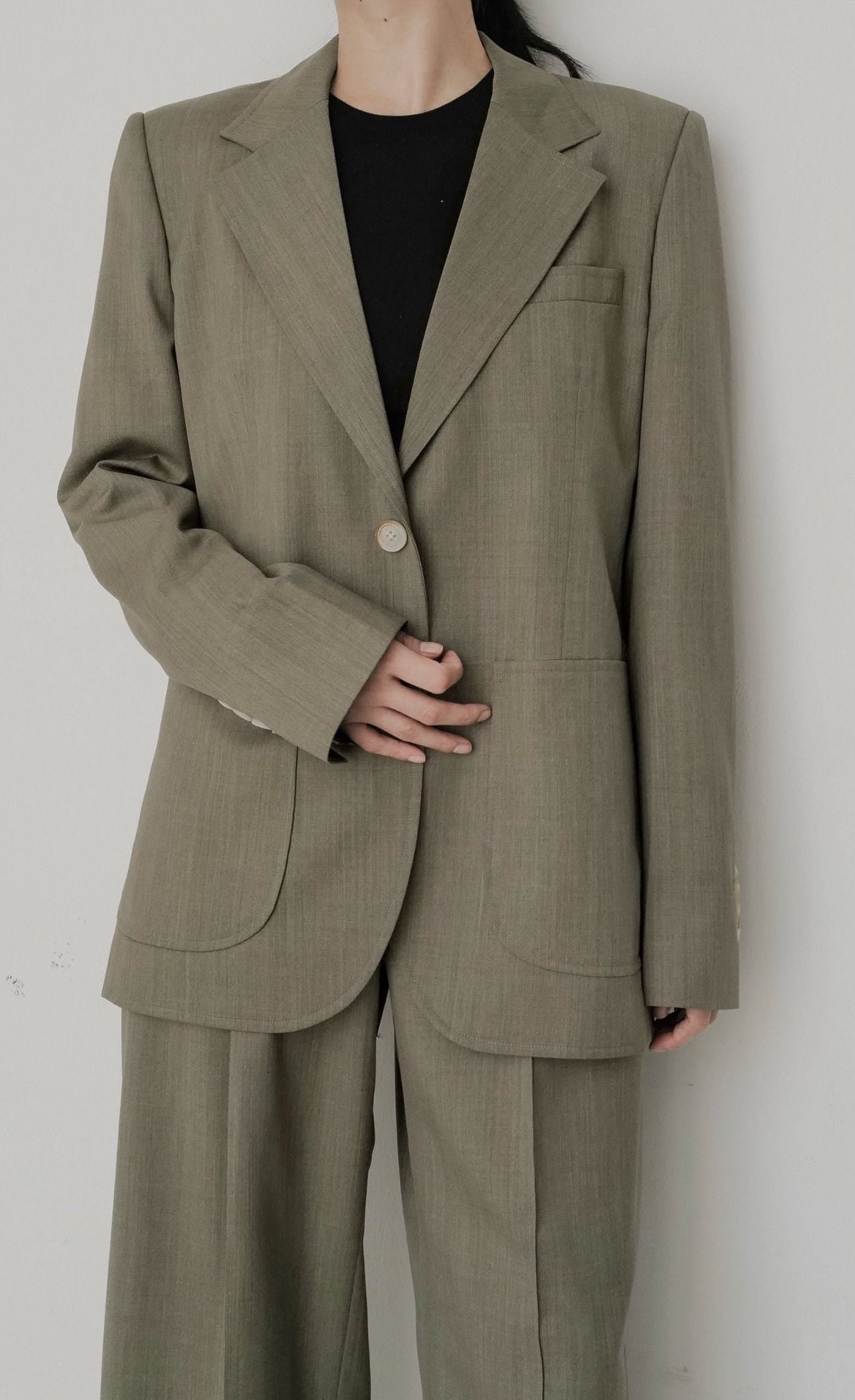- Mô tả chi tiết: 𝗘𝗨𝗣𝗛𝗢𝗡𝗬 𝗦𝗨𝗜𝗧 được lấy hơi thở từ những bộ suit may đo của nam, đề cao sự đơn giản, thoải mái nhưng chú trọng vào chất liệu và sự tỉ mỉ, toát lên khí chất quyền lực và đẳng cấp của Nàng. Điểm đặc biệt của 𝗘𝗨𝗣𝗛𝗢𝗡𝗬 𝗦𝗨𝗜𝗧 nằm ở lớp lót một lớp được viền tỉ mỉ bằng kỹ thuật thủ công cao cấp, tạo nên sự hoàn hảo trong từng đường nét. Tông màu xanh rêu cổ điển tôn lên vẻ cổ điển và sang trọng.