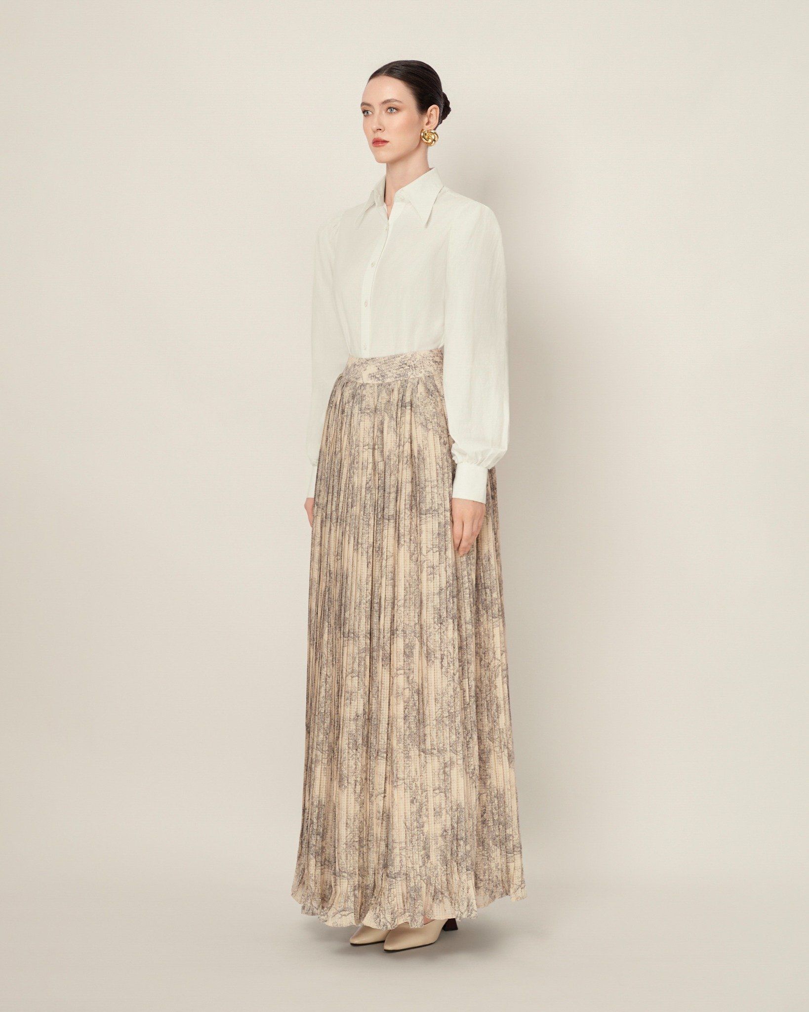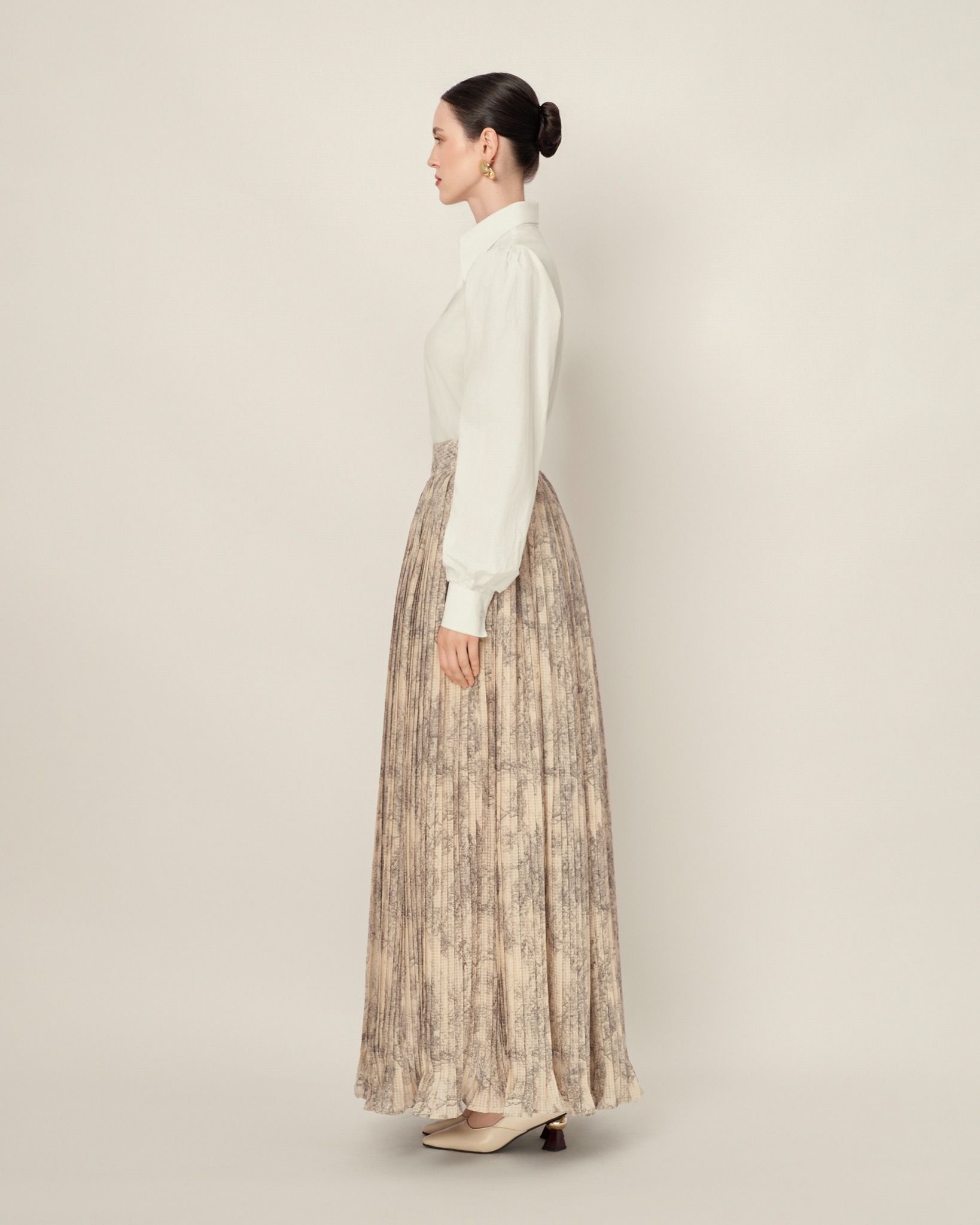 - Mô tả chi tiết: 𝗙𝗟𝗢𝗥𝗔𝗟 𝗝𝗨𝗟𝗜𝗘𝗧 𝗦𝗞𝗜𝗥𝗧 có thiết kế xòe được may từ 3 lớp vải (1 lớp vải chính và 2 lớp vải phụ) cùng những đường xếp ly tinh tế giúp tạo hiệu ứng thị giác mềm mại và tôn dáng. Phần eo được nhấn nhá trước khi chuyển tiếp xuống chân váy xòe rộng, có độ rũ tự nhiên và các đường ly xếp dọc, mang lại vẻ thướt tha, thanh lịch.