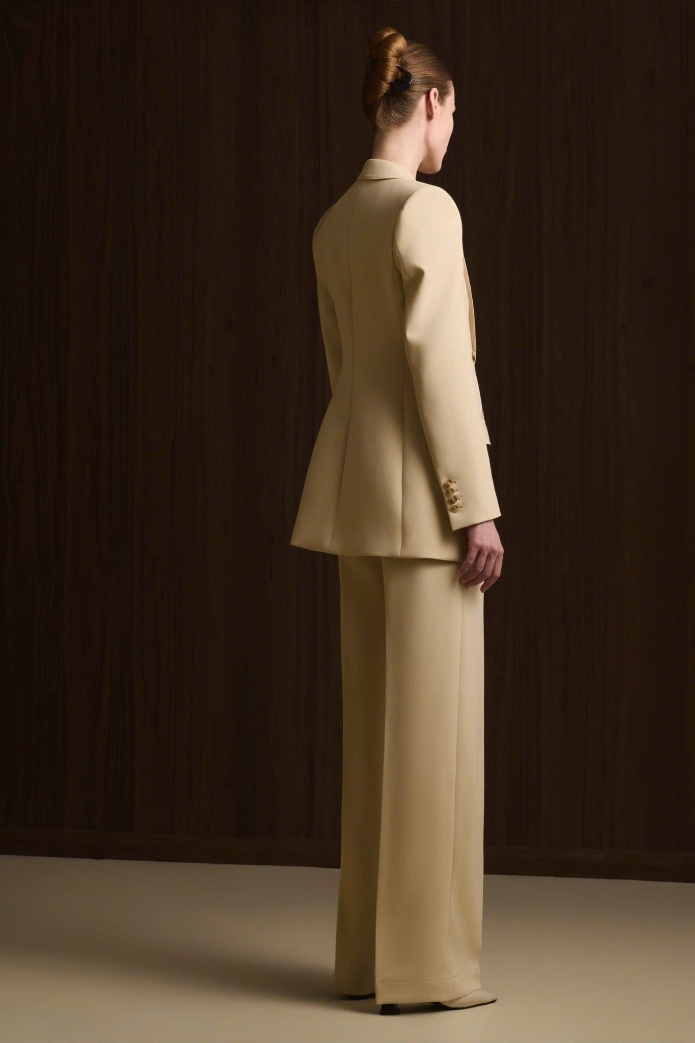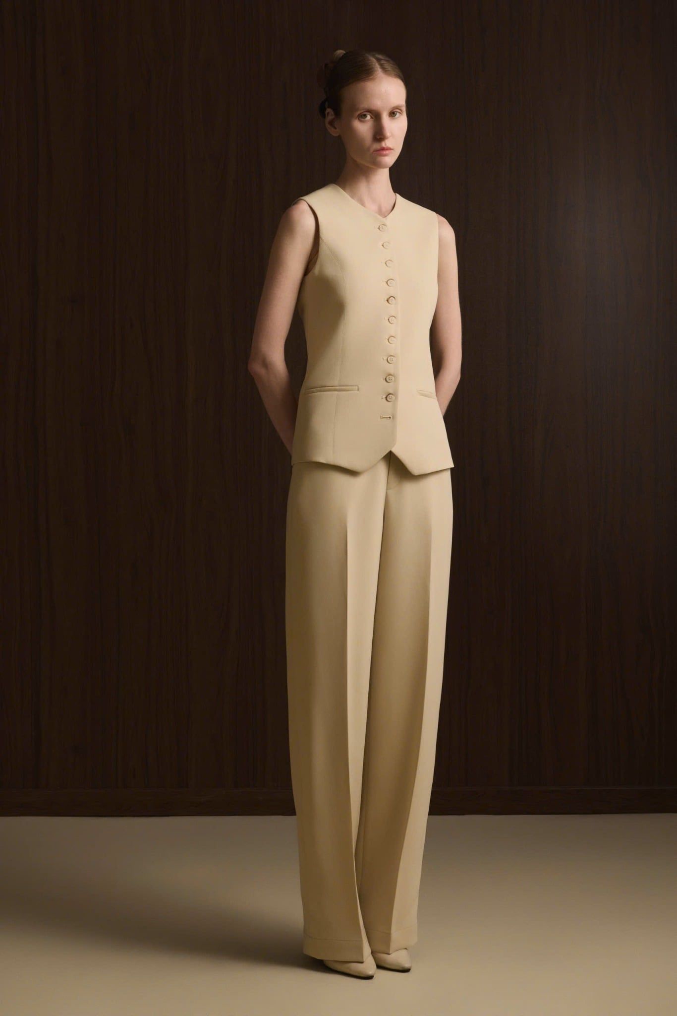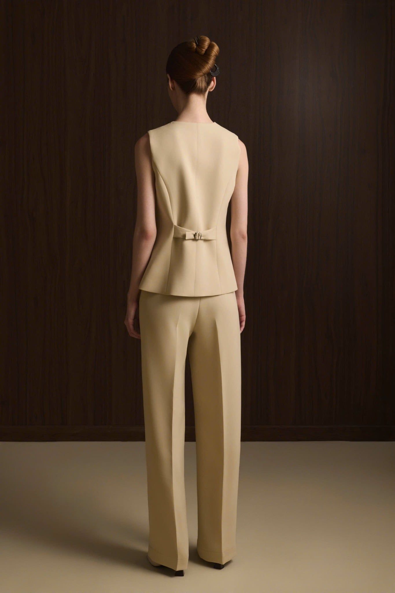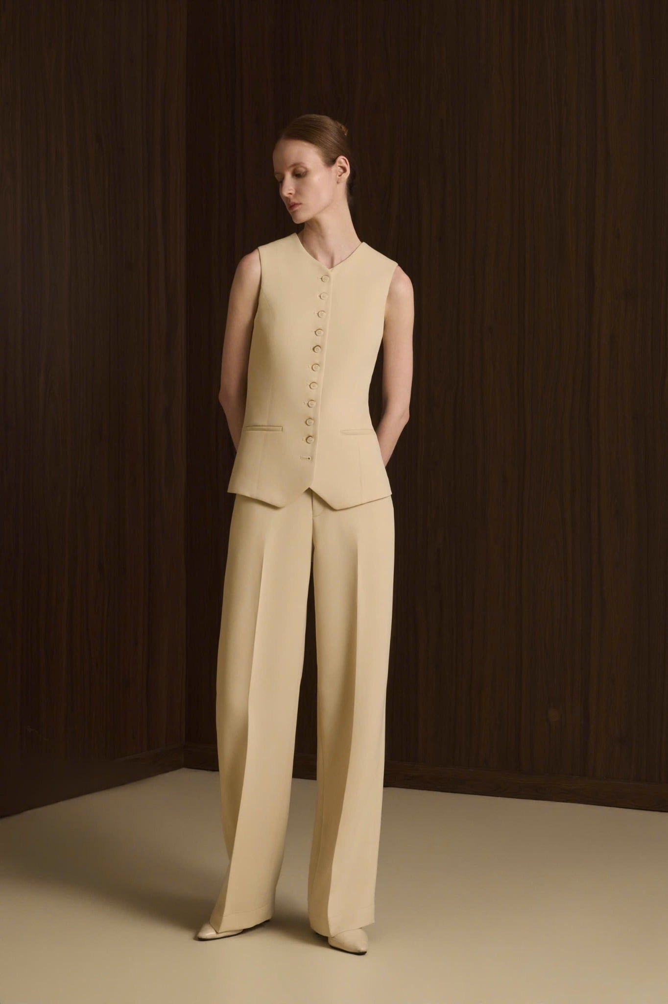 Đường ly giữa được ép sắc nét, góp phần định hình form dáng và tăng chiều sâu thị giác. Thiết kế hướng đến sự tối giản tuyệt đối, cho phép người mặc dễ dàng kết hợp cùng blazer đồng bộ hoặc các thiết kế mềm mại hơn để tạo nên sự đối lập tinh tế.