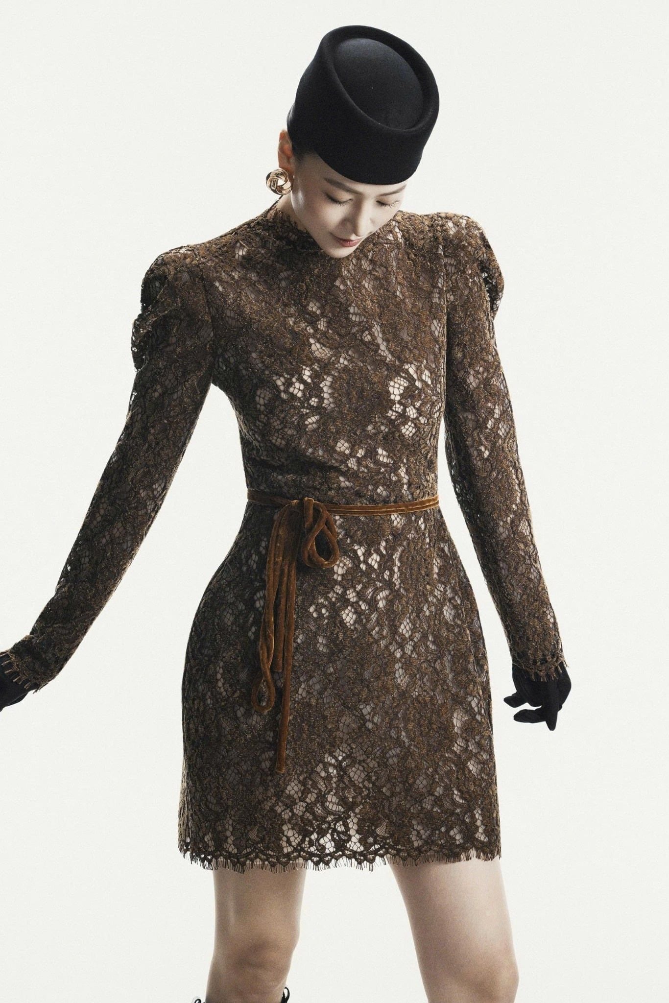 Lớp ren phủ toàn thân tạo hiệu ứng mềm mại, sang trọng.