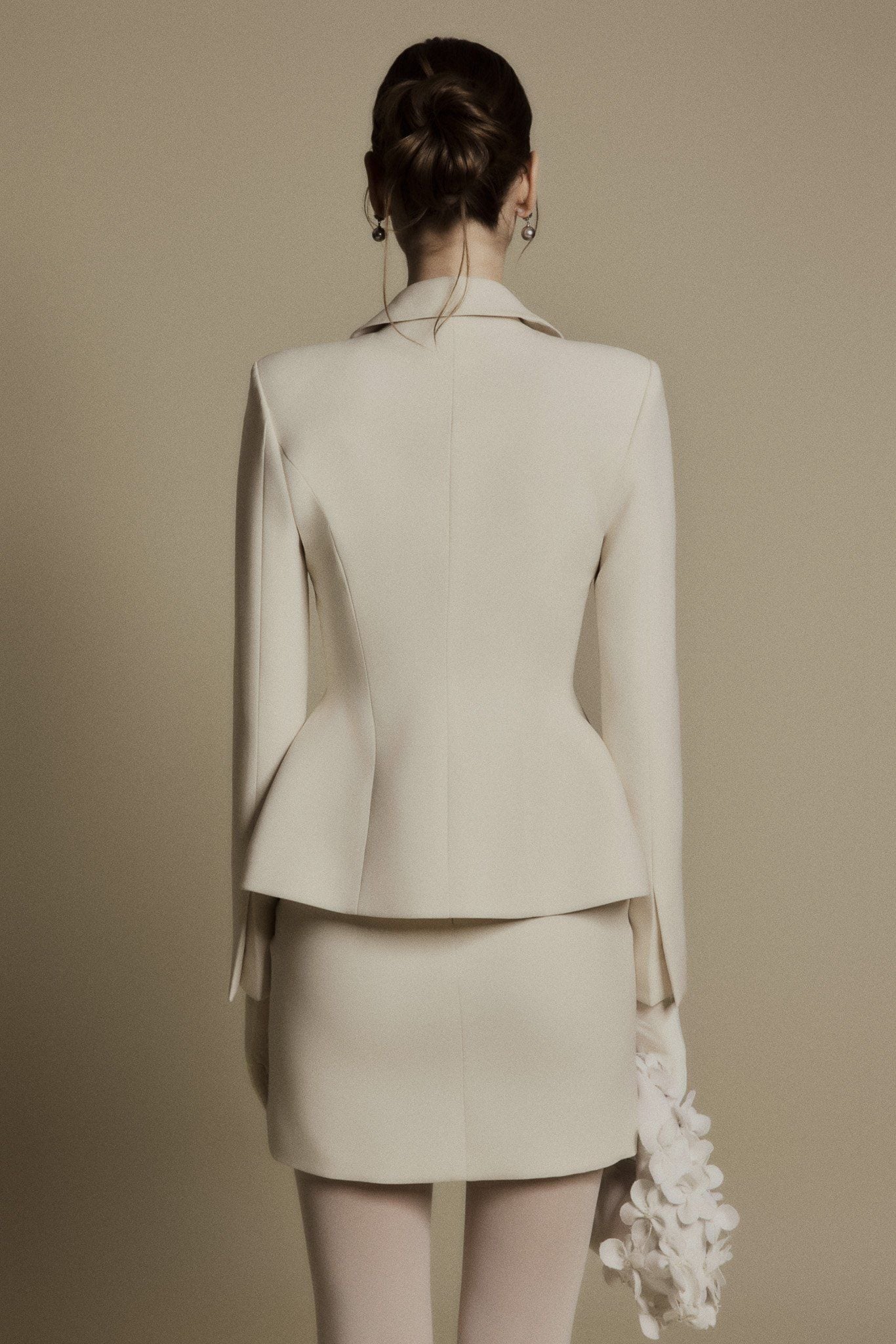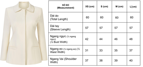 PEARL IVORY PETER PAN SUIT JACKET - chiếc áo suit màu ivory được thiết kế với cổ Peter Pan bo tròn mềm mại – một biểu tượng của vẻ đẹp cổ điển nữ tính. Phom áo dựng khối chuẩn xác, ôm nhẹ phần eo, tạo đường cong thanh thoát mà vẫn giữ được vẻ thanh lịch trang nhã. Điểm đặc biệt nằm ở dây kéo 2 đầu ẩn bên trong – một chi tiết tinh tế giúp bạn có thể linh hoạt thay đổi phong cách: kéo kín tạo vẻ chỉn chu, trang trọng; hoặc mở nhẹ phần dưới để phối cùng quần, chân váy hoặc áo bên trong theo phong cách casual hiện đại.
