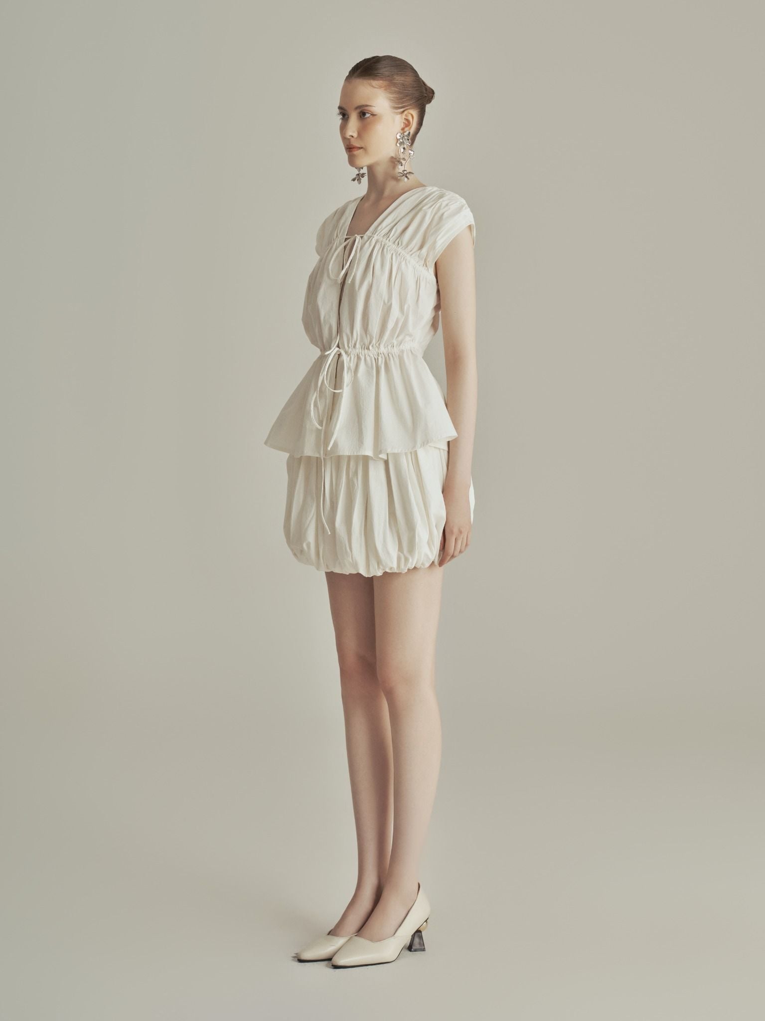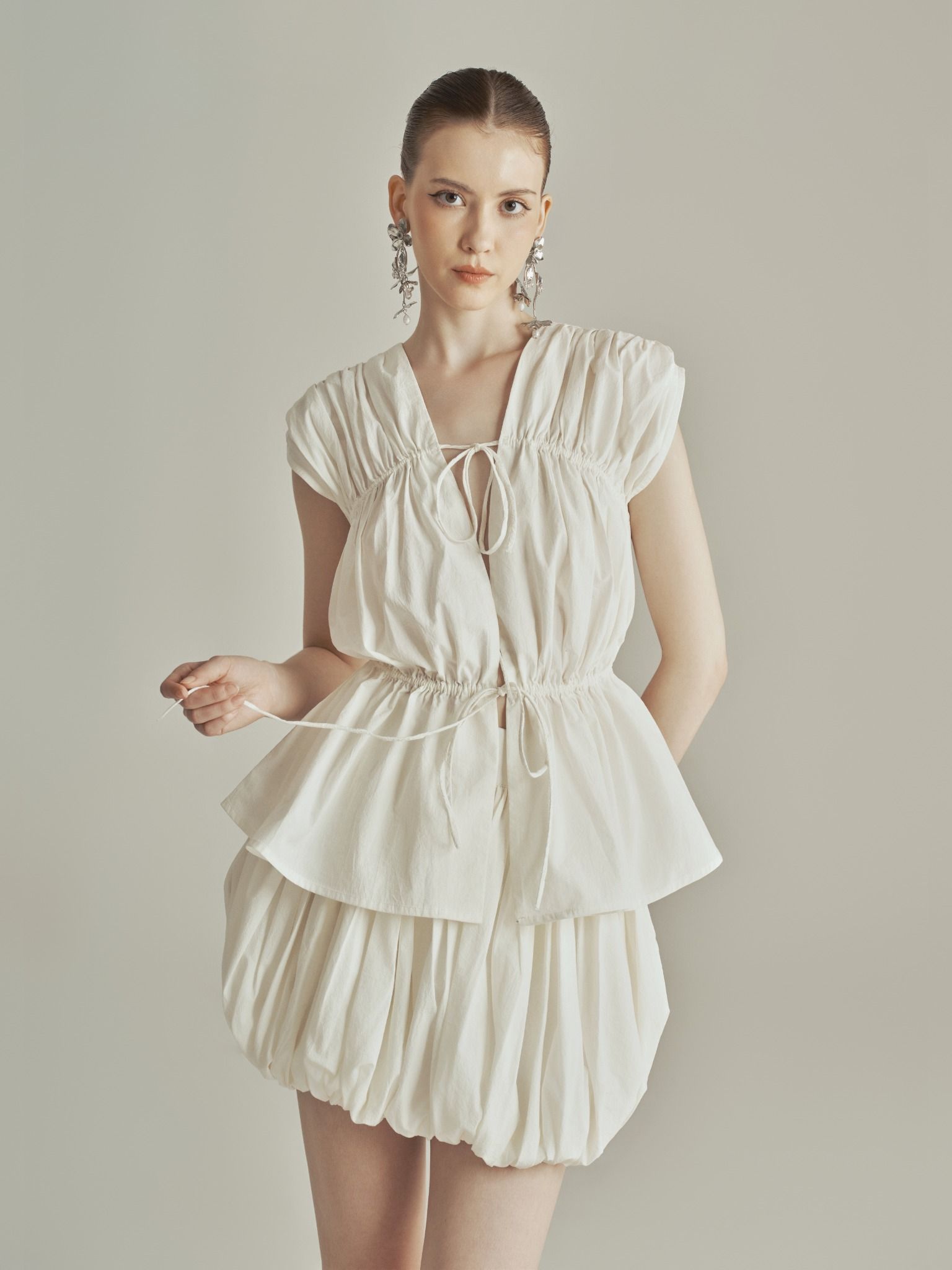 - Mô tả chi tiết: Những chi tiết như ruched (nhún) hay gathered (gập) được thêm vào bằng tay, tạo nên sự độc đáo và tinh tế cho set đồ. Đây không chỉ là sự kỹ thuật, mà còn là sự tôn vinh cho nghệ nhân và sự tỉ mỉ trong từng đường kim mũi chỉ mà 𝗧𝗛𝗘 𝗦𝗢𝗨𝗟 dành cho Nàng.