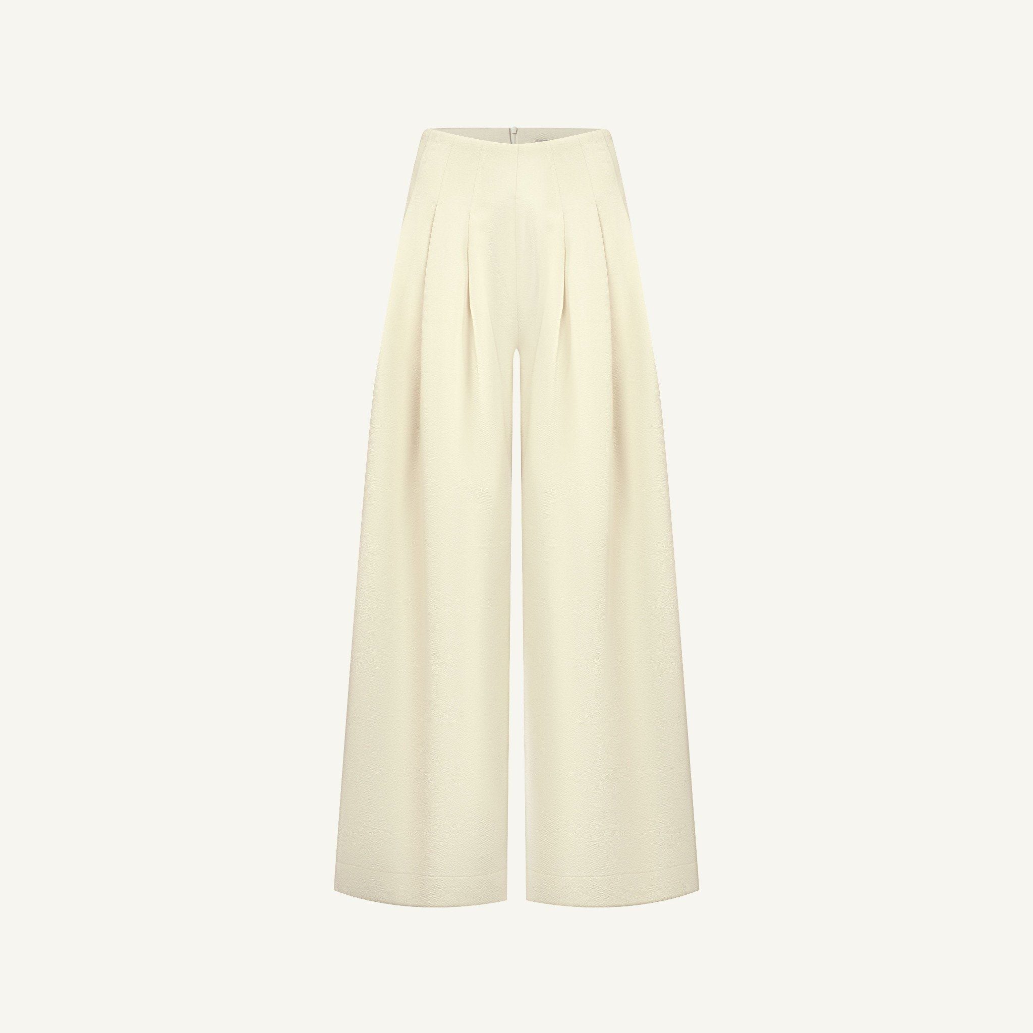 𝗩𝗔𝗡𝗜𝗟𝗔 𝗛𝗜𝗚𝗛-𝗪𝗔𝗜𝗦𝗧𝗘𝗗 𝗧𝗥𝗢𝗨𝗦𝗘𝗥𝗦 là thiết kế quần dài cạp cao được may đo với tỷ lệ chuẩn xác, tôn dáng và dễ phối đồ. Dáng ống rộng giúp tạo hiệu ứng kéo dài chân, che khuyết điểm và mang lại vẻ ngoài thanh lịch. Chi tiết ly nhẹ phía trước giúp định hình phom quần rõ nét, đồng thời tạo điểm nhấn nhẹ nhàng cho tổng thể tối giản. Với tông màu trung tính trang nhã cùng cấu trúc cứng cáp vừa phải, đây là mẫu quần phù hợp cho cả môi trường công sở lẫn những dịp cần sự chỉn chu tinh tế.
